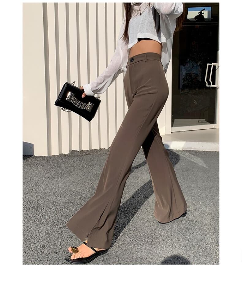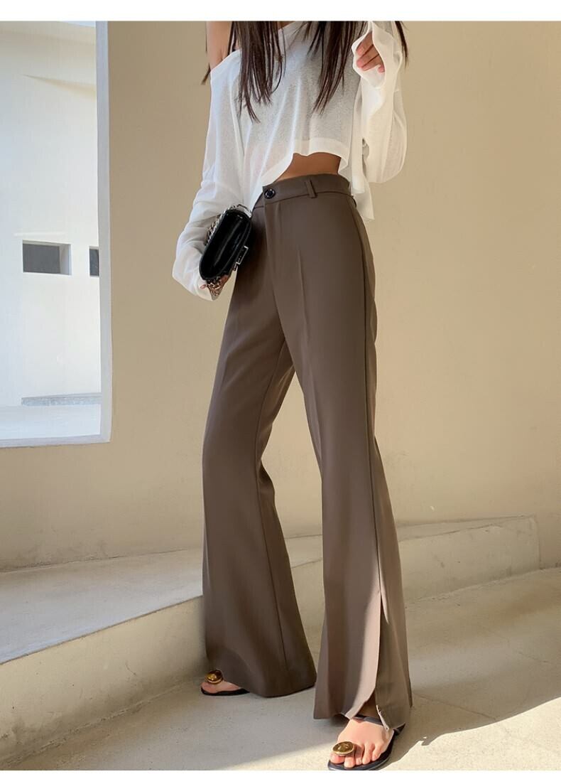 センタープレスフレアパンツ カジュアルパンツ ハイウエスト ドレープ フレアパンツ スリット カジュアル レディース 2カラー a4287