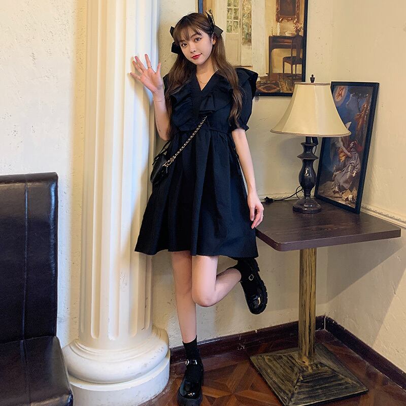 【大きいサイズ】Vネックフリルワンピース パフスリーブ. フリルワンピース フリル ワンピース ドレス レディース 半袖 かわいい カジュアル a4298