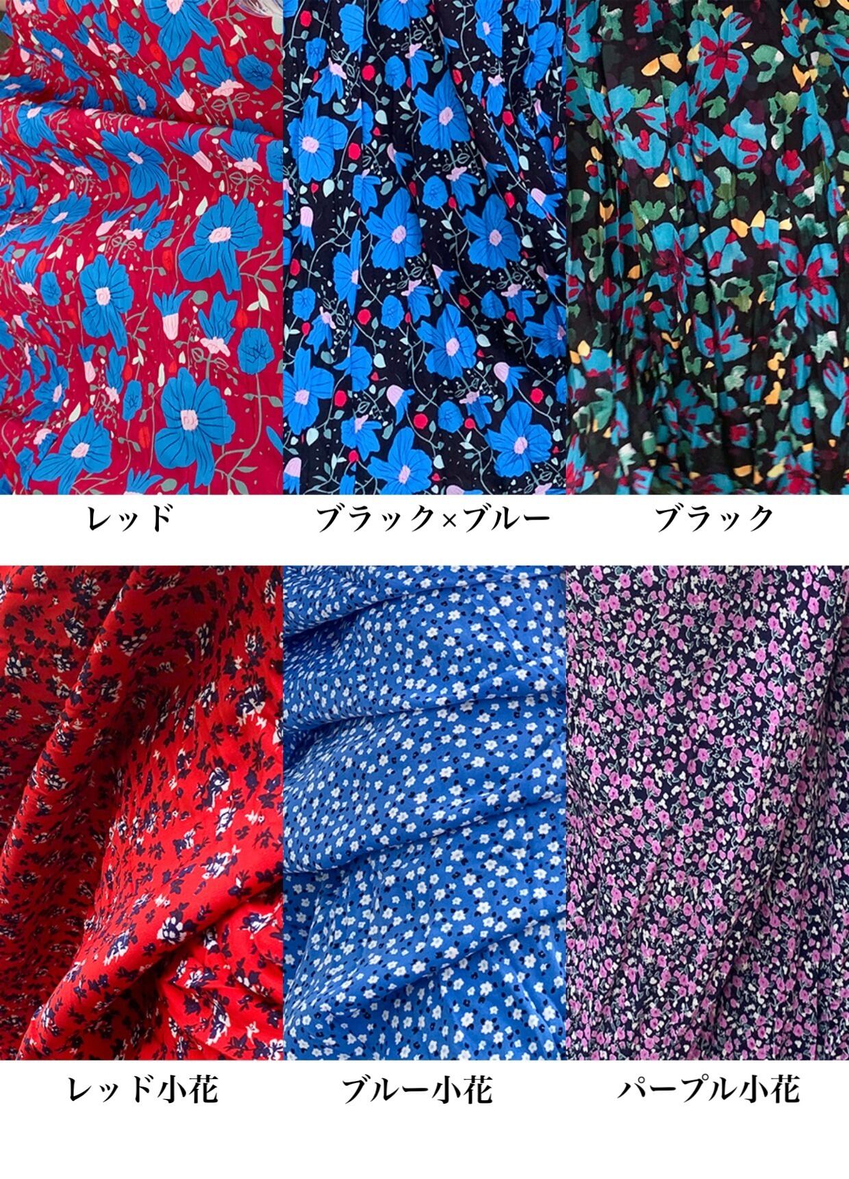 【カラー】レッド、ブラック×ブルー、ブラック、イエロー、レッド小花、ブルー小花、パープル小花