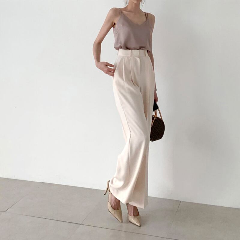 カジュアルドレープパンツ ストレートパンツ ワイドパンツ ハイウエスト ルーズ カジュアル 無地 レディース 韓国 オフィスコーデ 2カラー a4306