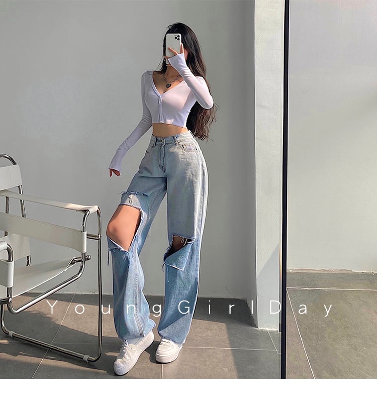 グラデーションストレートジーンズ ダメージジーンズ デニム ジーンズ ダメージデニム レディース ハイウエスト ルーズ. アメカジ カジュアル ストリート 2カラー a4315