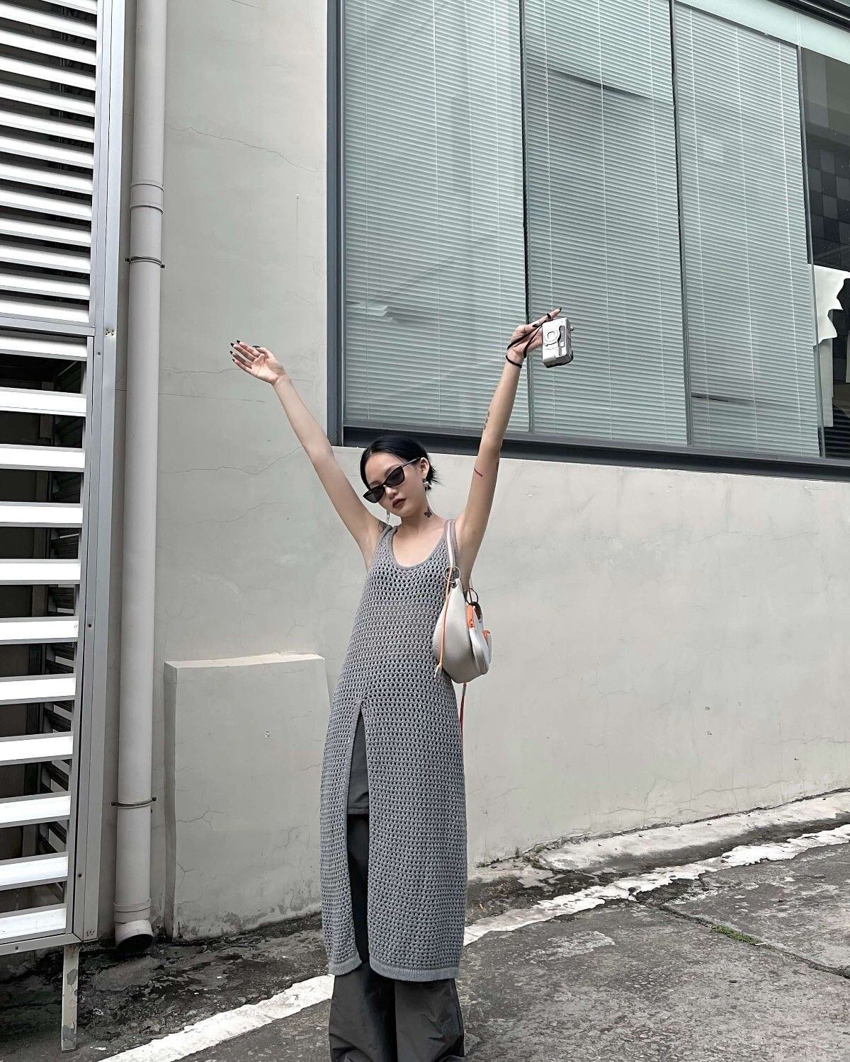 ニットメッシュ加工が可愛いノースリーブワンピース
