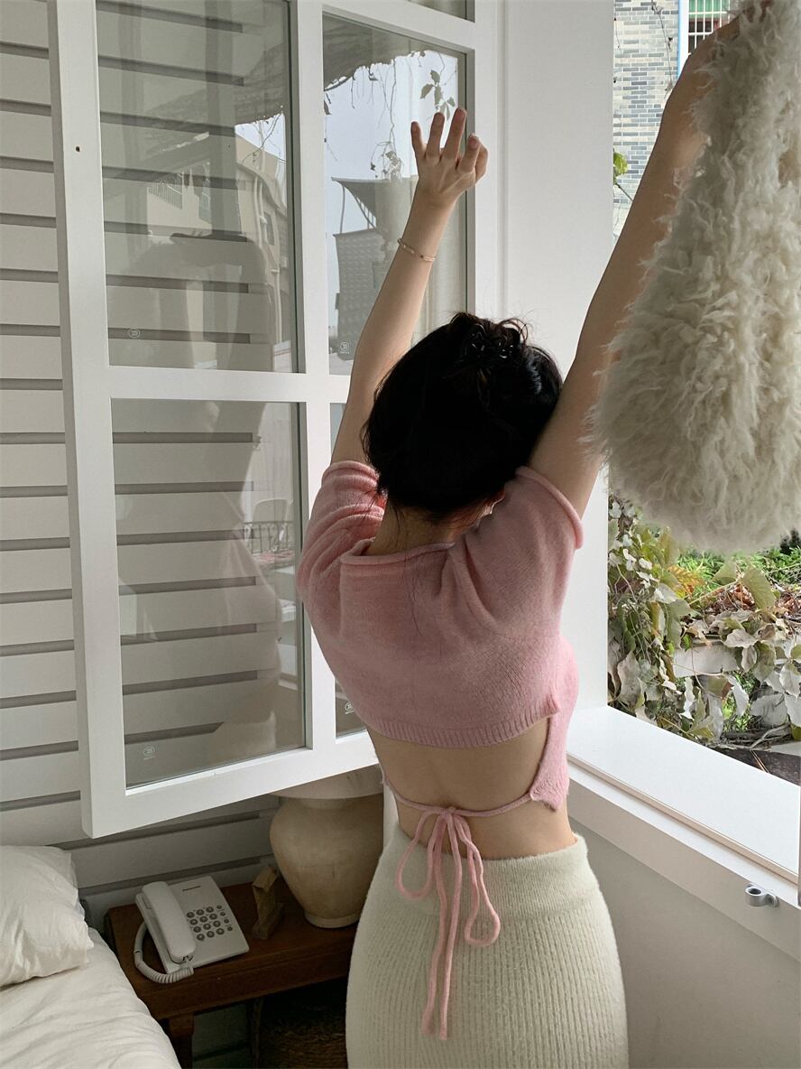 バックレス×ストラップが魅力的な半袖ニットセーターTシャツ