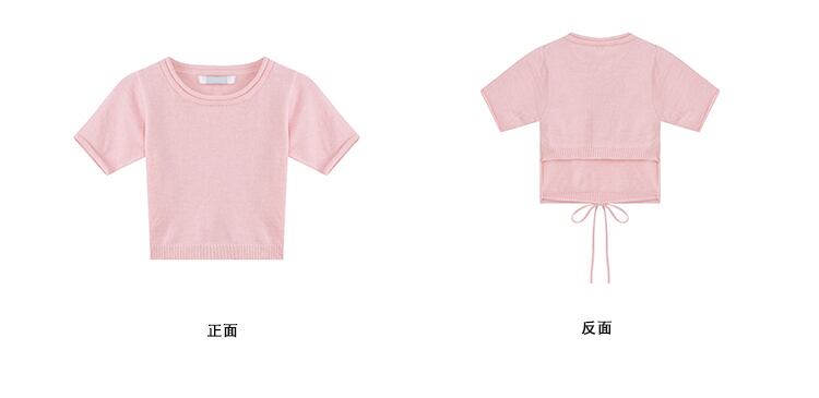 半袖ニットセーターTシャツ バックレス カットアウト ストラップ 半袖 ニット セーター トップス レディース 2カラー a4320