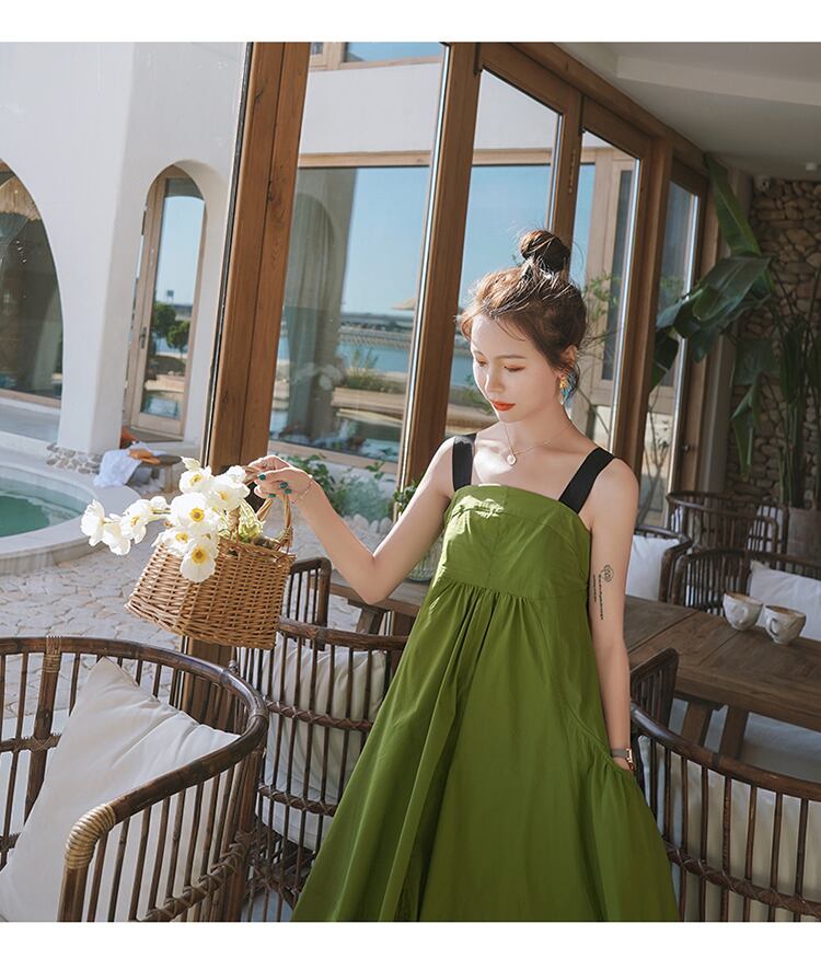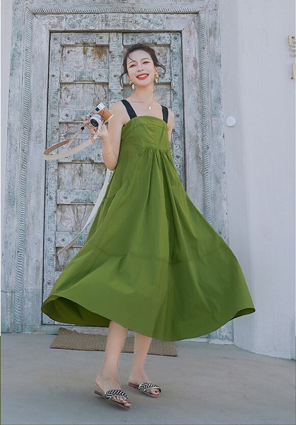 Aラインストラップワンピース ワンピース レディース フレアワンピース ロング ロング丈 袖なし スクエアネック フレア サマーワンピ 3カラー a4337