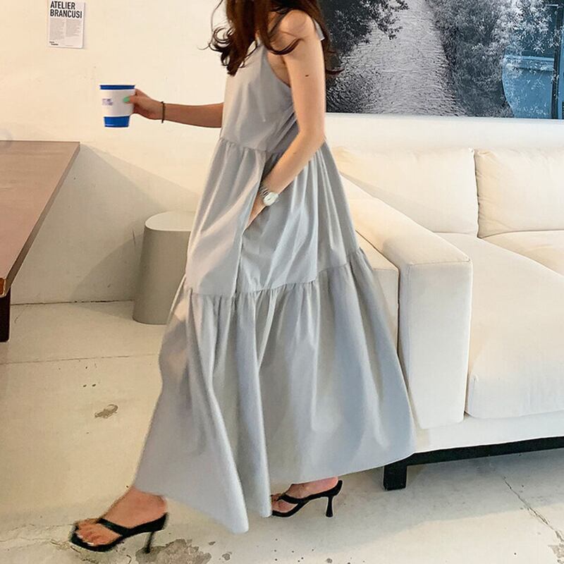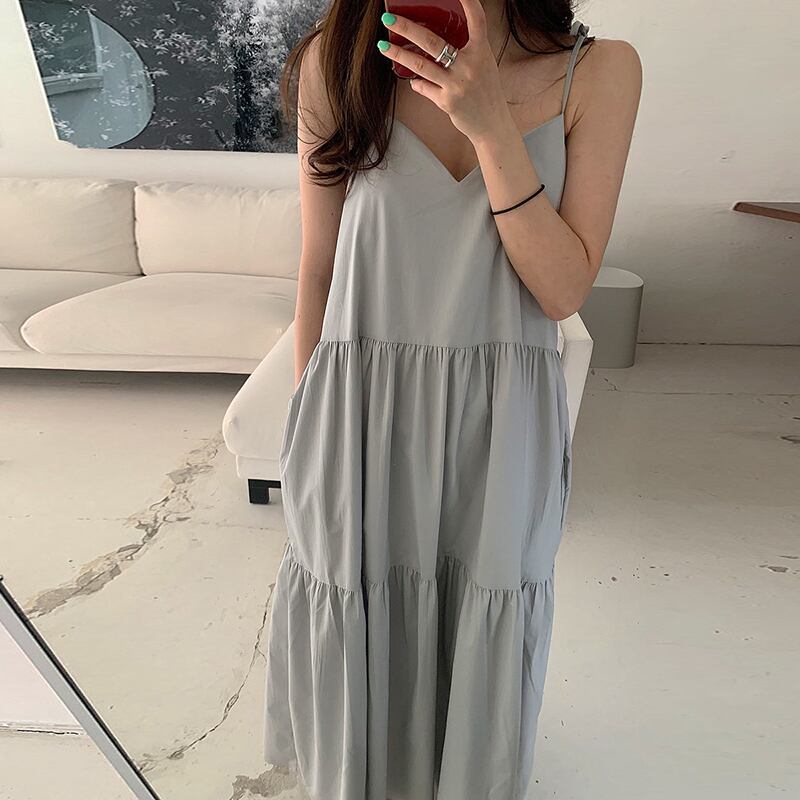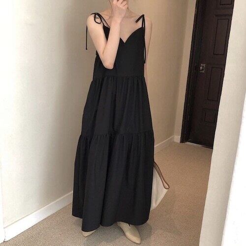 ティアードキャミワンピース ワンピース ドレス キャミワンピース ティアードワンピース ミモレ丈 レディース 韓国 オルチャン サマーワンピ ママコーデ オフィス 3カラー a4329