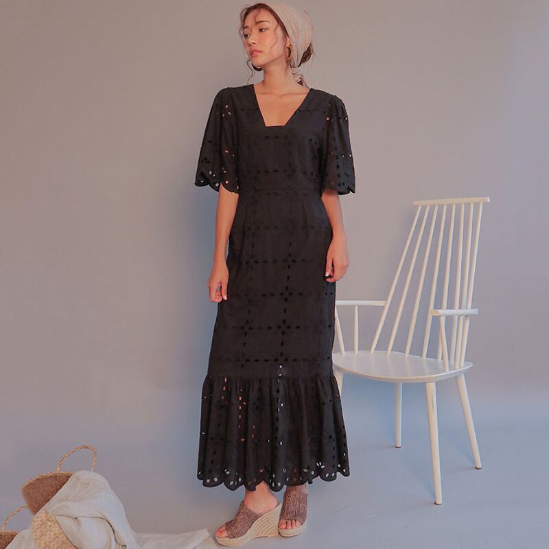 爽やかに夏の気分を楽しむパンチングレースワンピース