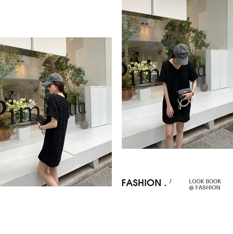 エンボスパフスリーブワンピース