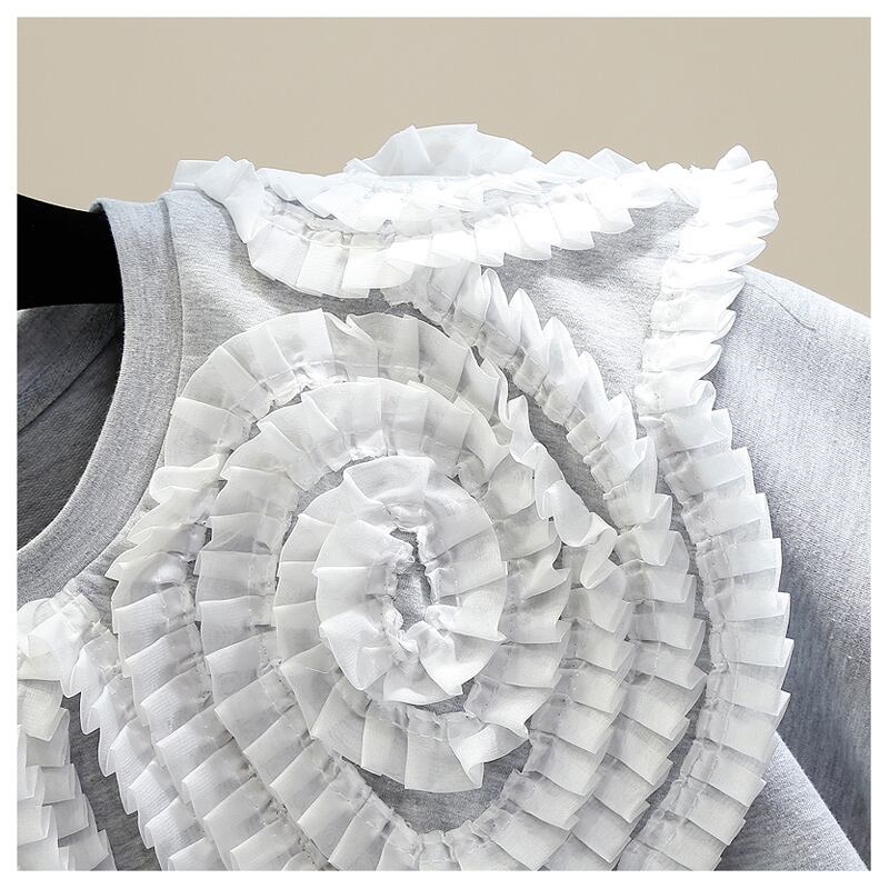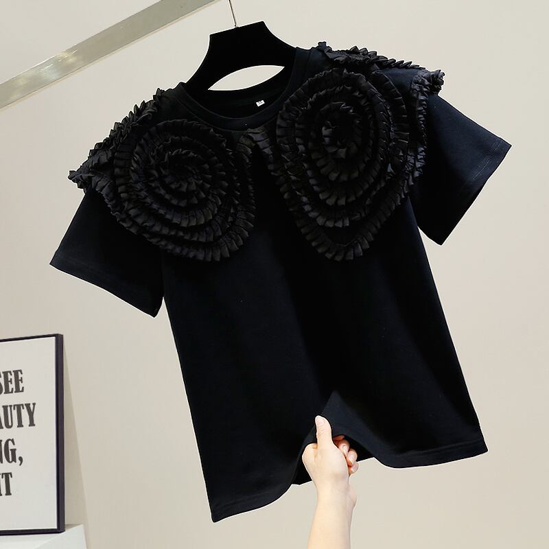 花柄フリル 半袖Tシャツ Tシャツ 半袖 トップス プルオーバー ウンドネック レディース ママコーデ お仕事コーデ オフィス 夏 a4562