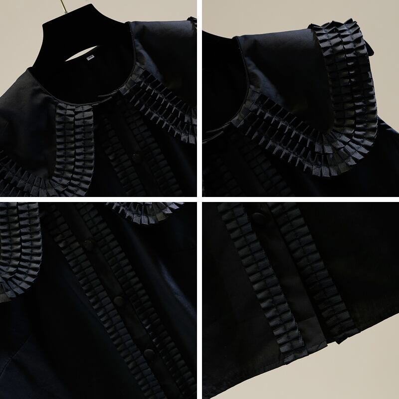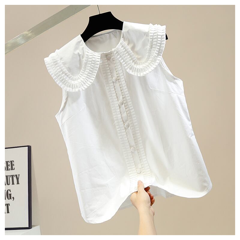 プリーツノースリーブシャツ ノースリーブブラウス フリル襟 くるみボタン ノースリーブ シャツ ブラウス レディース ママコーデ お仕事コーデ オフィス 春 夏 秋 C95