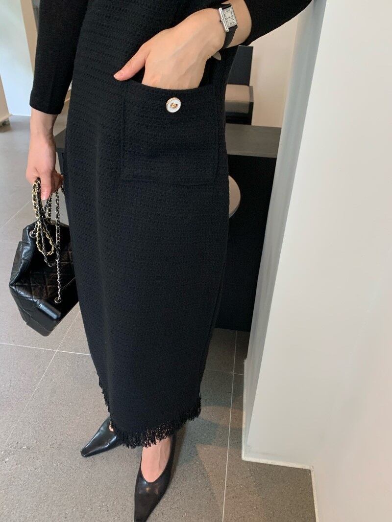 トレンドの大きめカラーブラウスと大人綺麗なフリンジツイードワンピースのセットアップアイテムです。