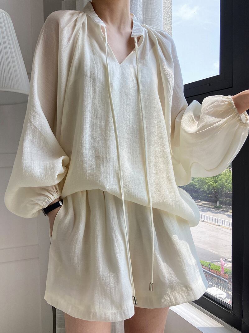 【セットアップ】Vネックブラウス+ハーフパンツ