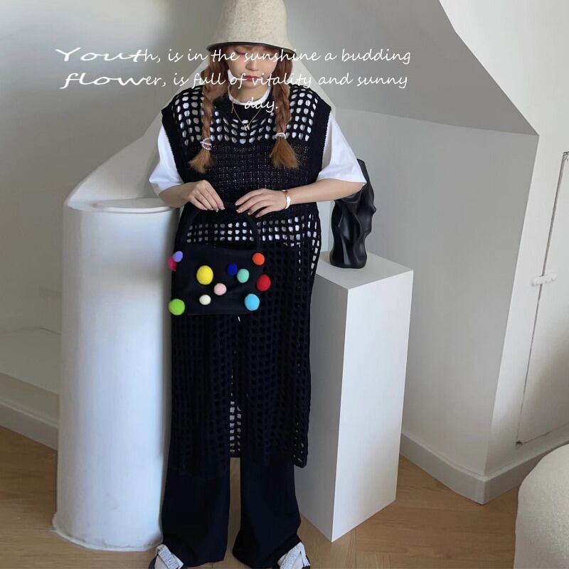 ニットメッシュワンピース レディース レイヤード ゆるミディアム ニットワンピース 春夏 ノースリーブ ベスト ニット ドレス ゆるふわ かわいい 韓国 オルチャン 6カラー a4376
