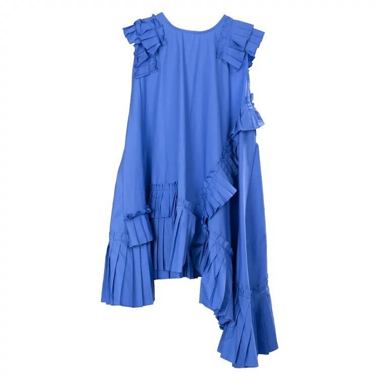 アシメ丈やプリーツフリル使いが個性的でおしゃれなプリーツフリルワンピ