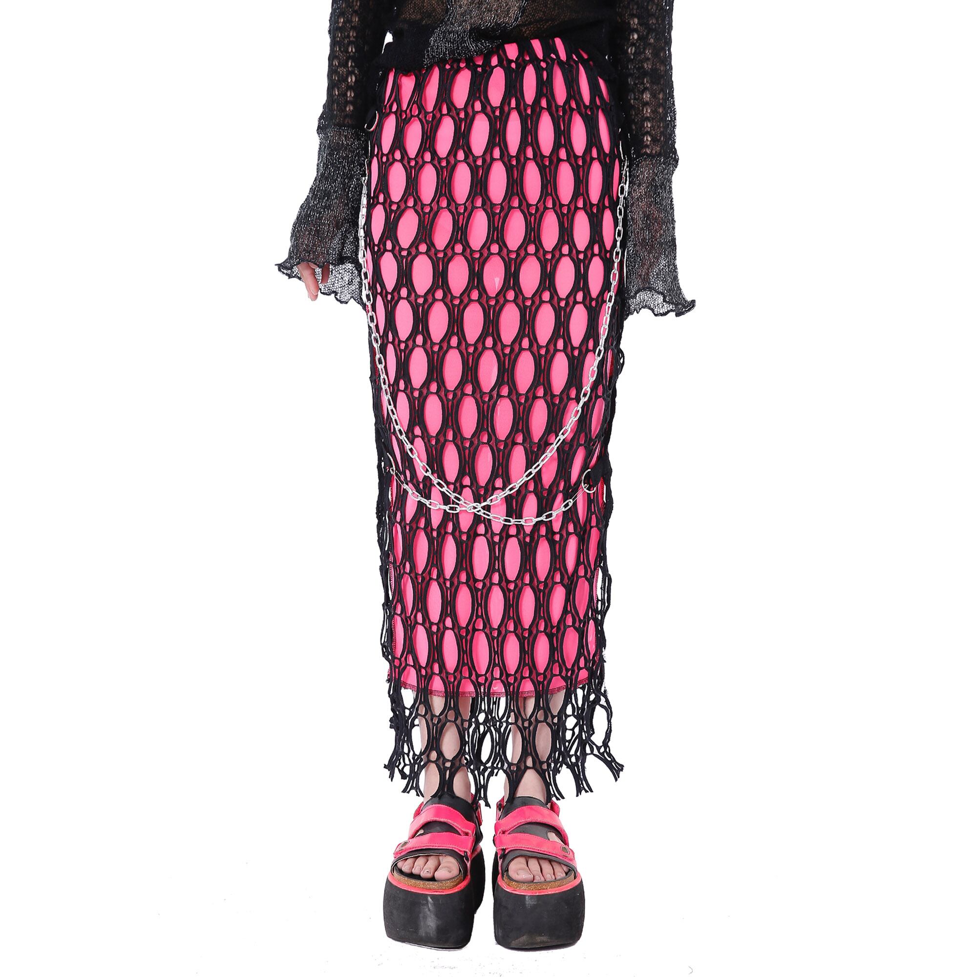 チェーン付き メッシュスカート ビビッドカラー スカート ピンク サイドスリット ロングスカート オシャレ レディース モード系 ロック ゴスロリ C46