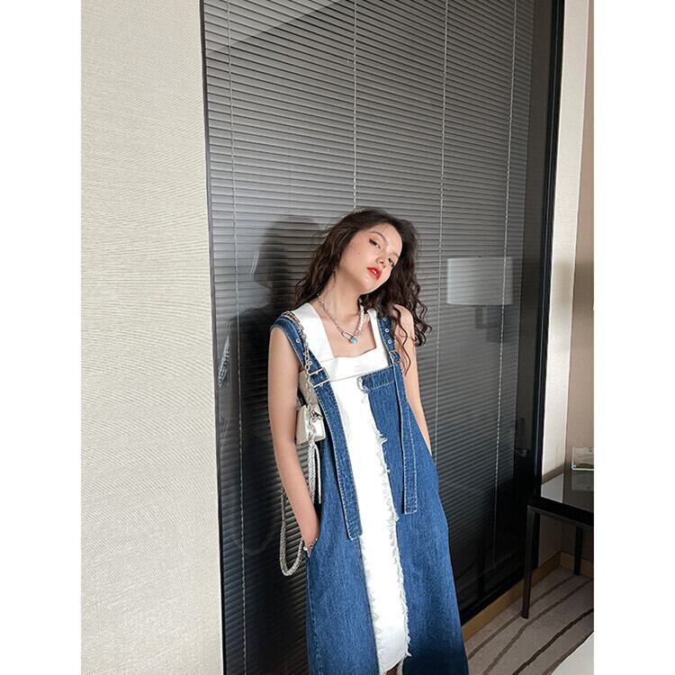 デニムサスペンダースカート デニムワンピース. デニム サスペンダースカート デニムワンピ. レディース バイカラー ツートーン ドレス ワンピース. モード系 オシャレ ママコーデ a4466