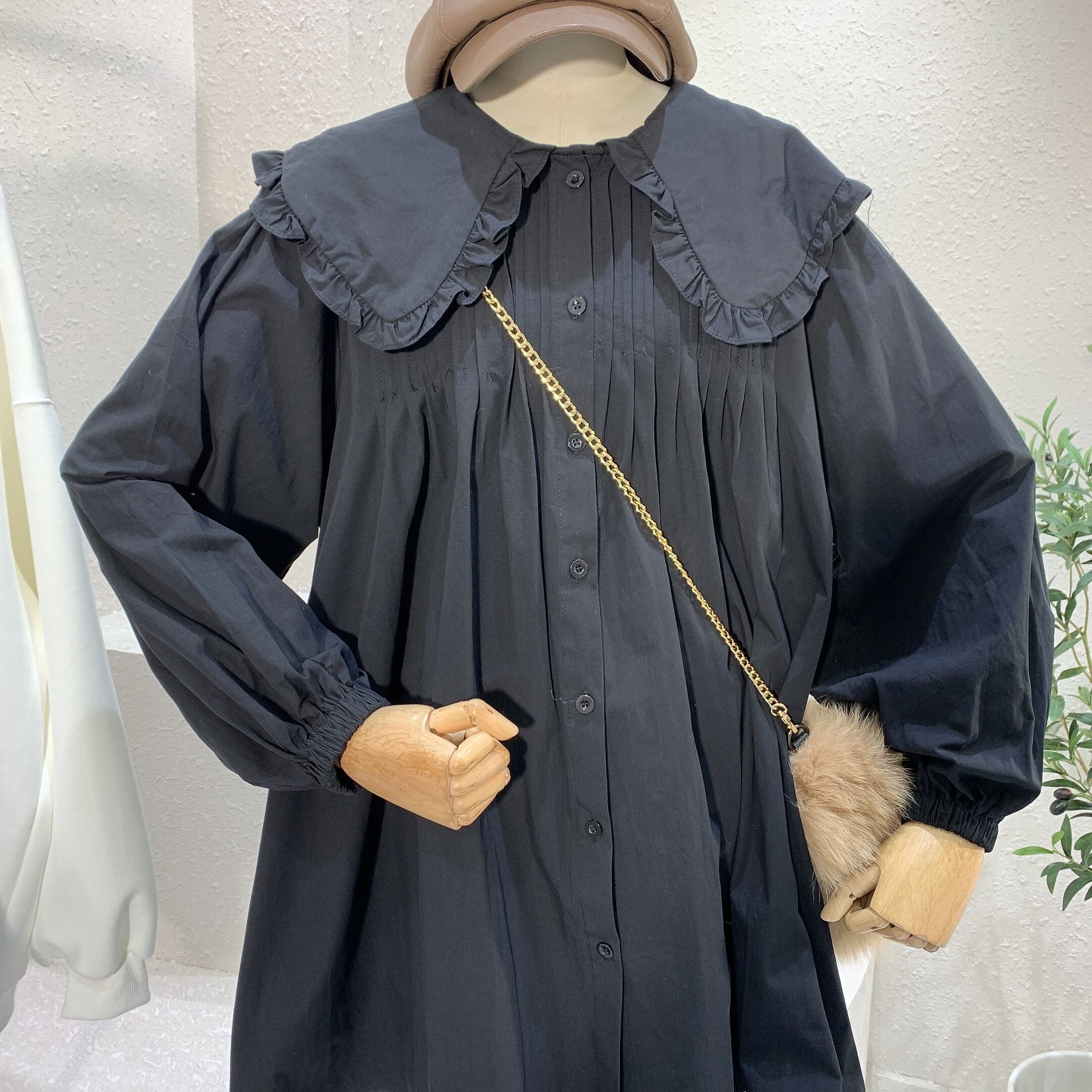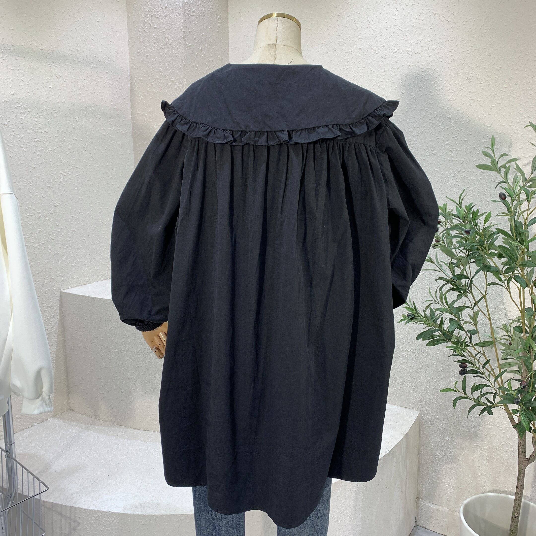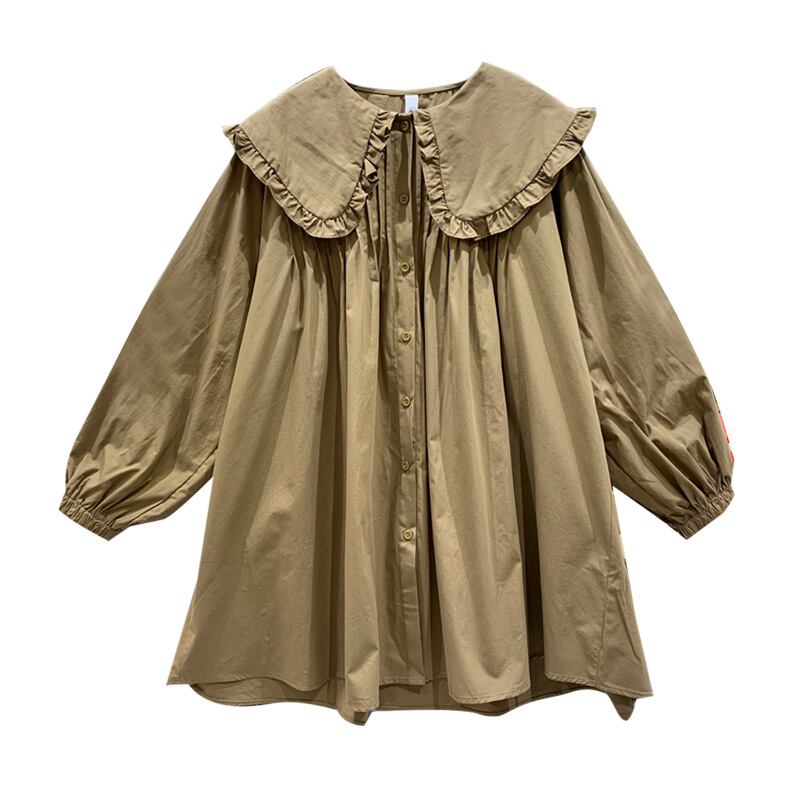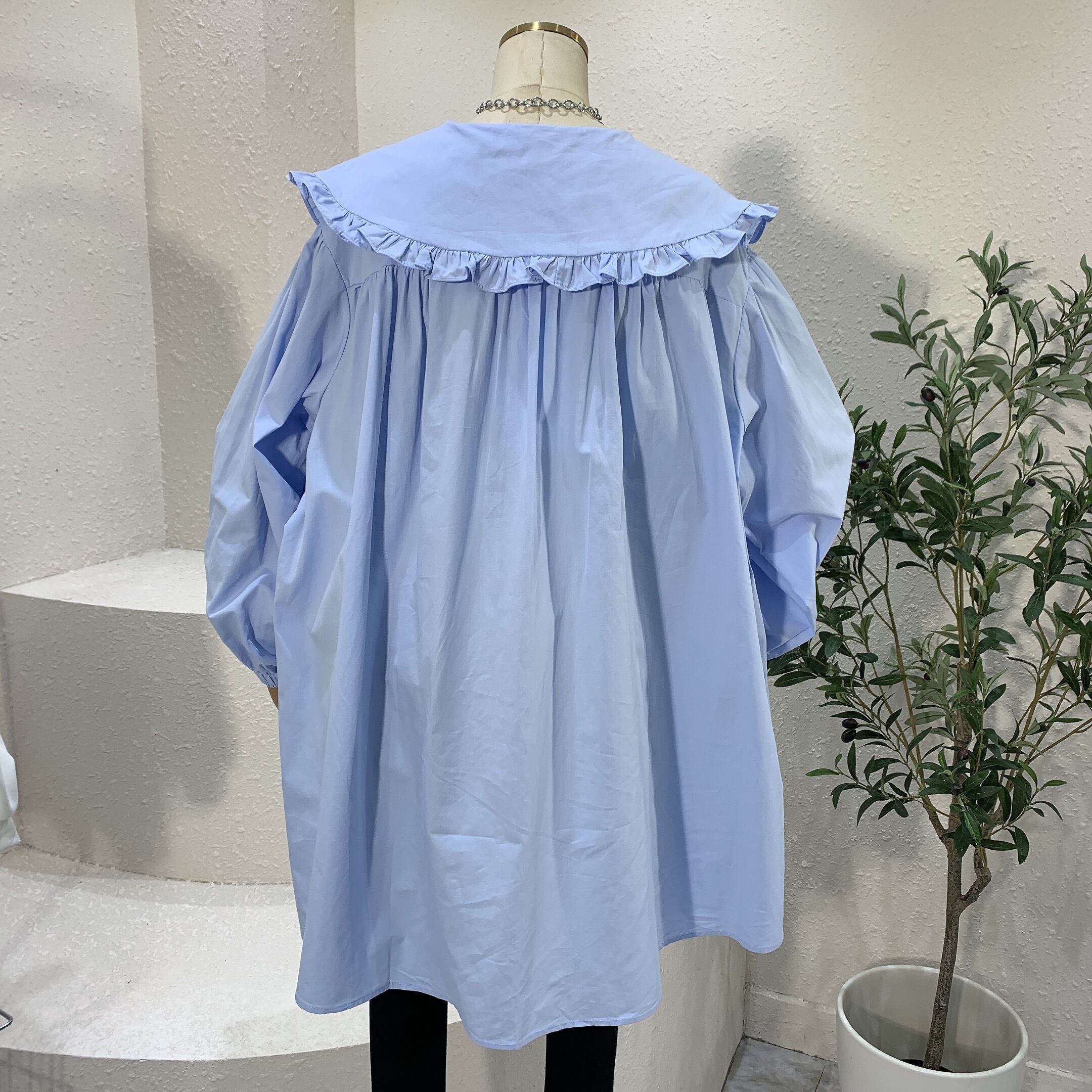BIGフリルシャツ ブラウス シャツ 長袖 フリルシャツ フリルブラウス レディース トップス ワンピース ママコーデ マタニティーコーデ お仕事コーデ プルオーバー a4416