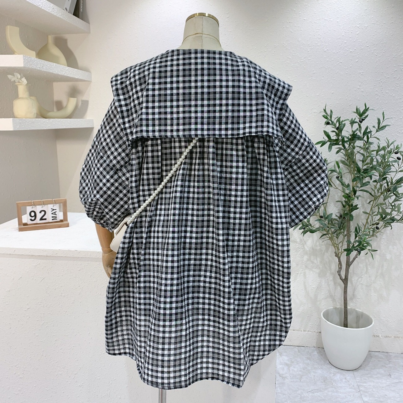 BIGカラーシャツ ブラウス シャツ 5分袖 フリルシャツ フリルブラウス レディース トップス ワンピース ママコーデ マタニティーコーデ お仕事コーデ プルオーバー C77