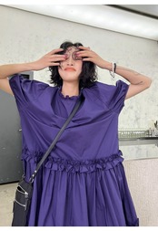 フリルプリーツワンピース パフスリーブ フリルワンピース 半袖 ワンピース ドレス サマードレス ルーズ レディース プルオーバー Aラインワンピース モード系 ガーリー オシャレ デート a4421