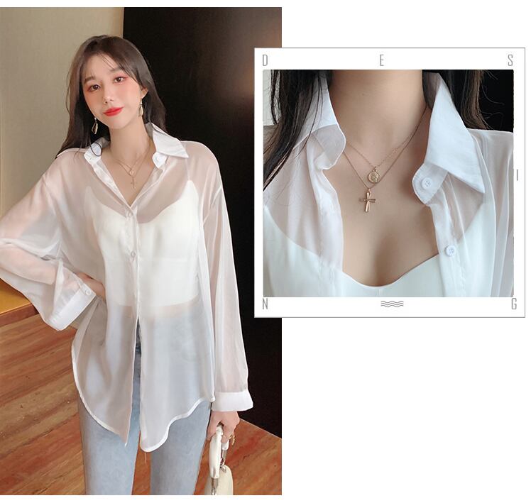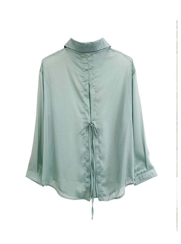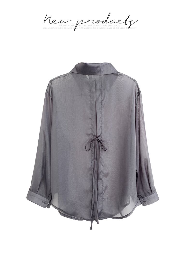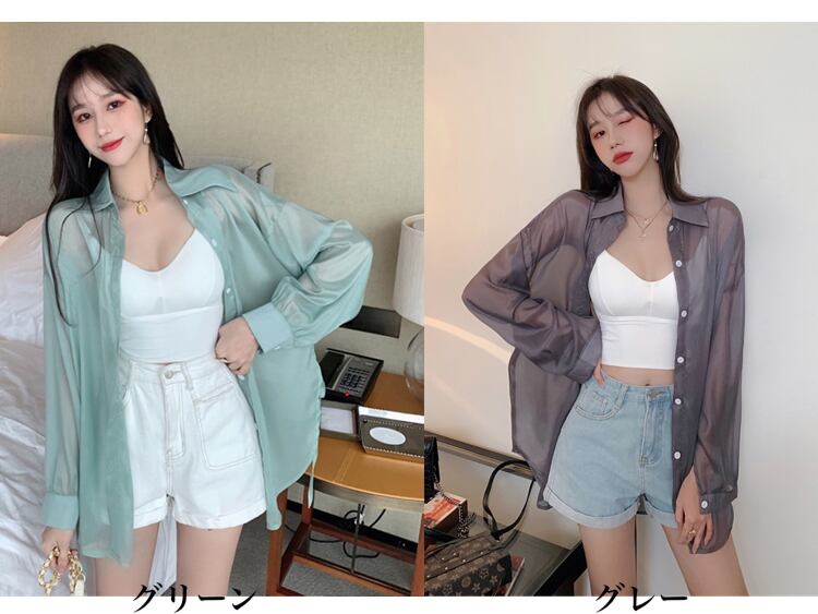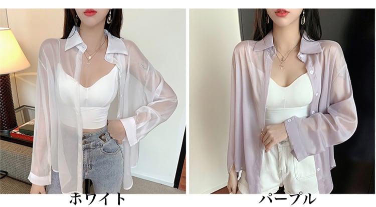 シアーシャツ カーディガン シースルー シャツ 長袖 透け感 レディース バックリボン 日焼け止め シフォンシャツ 4カラー a4462