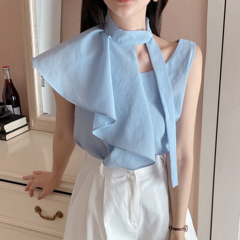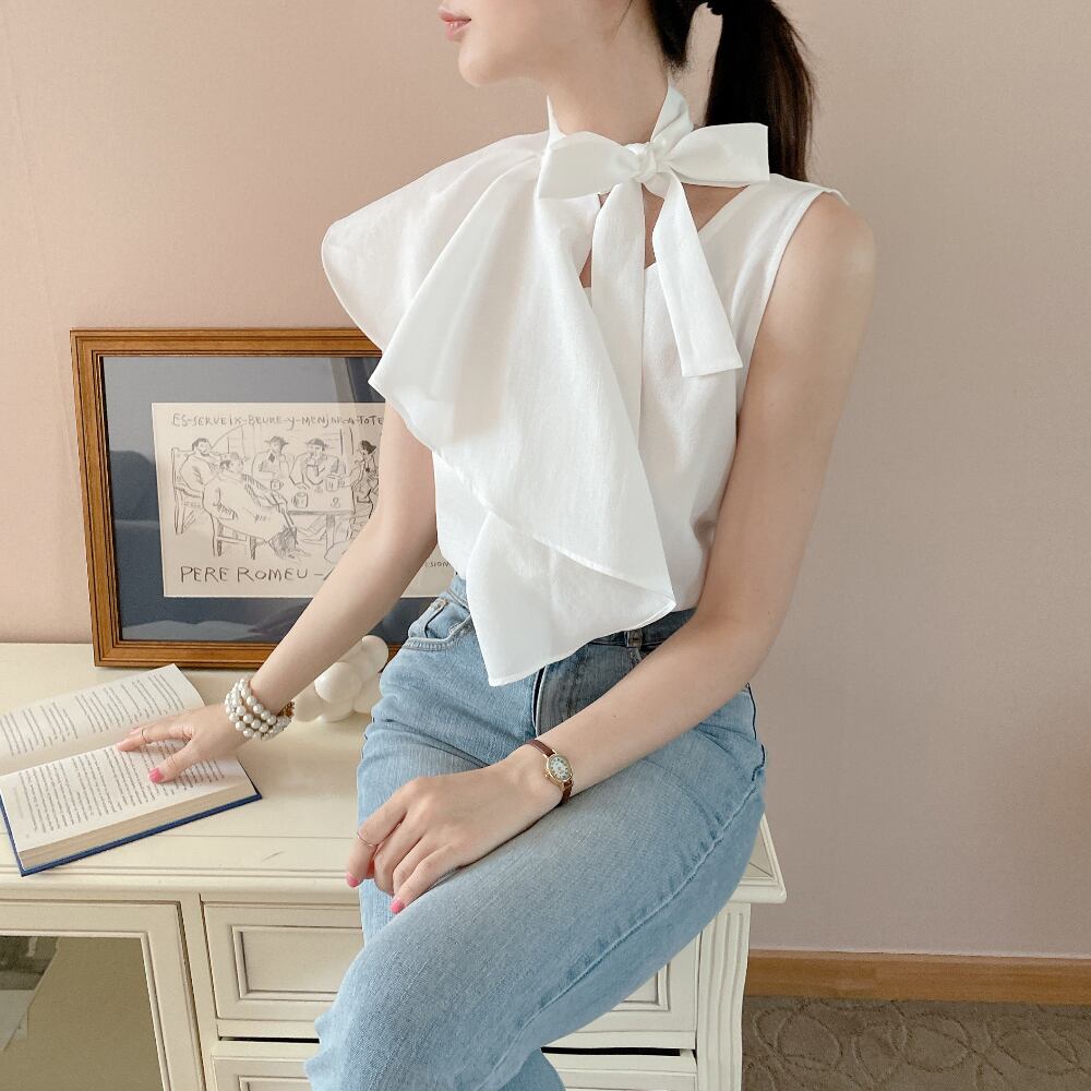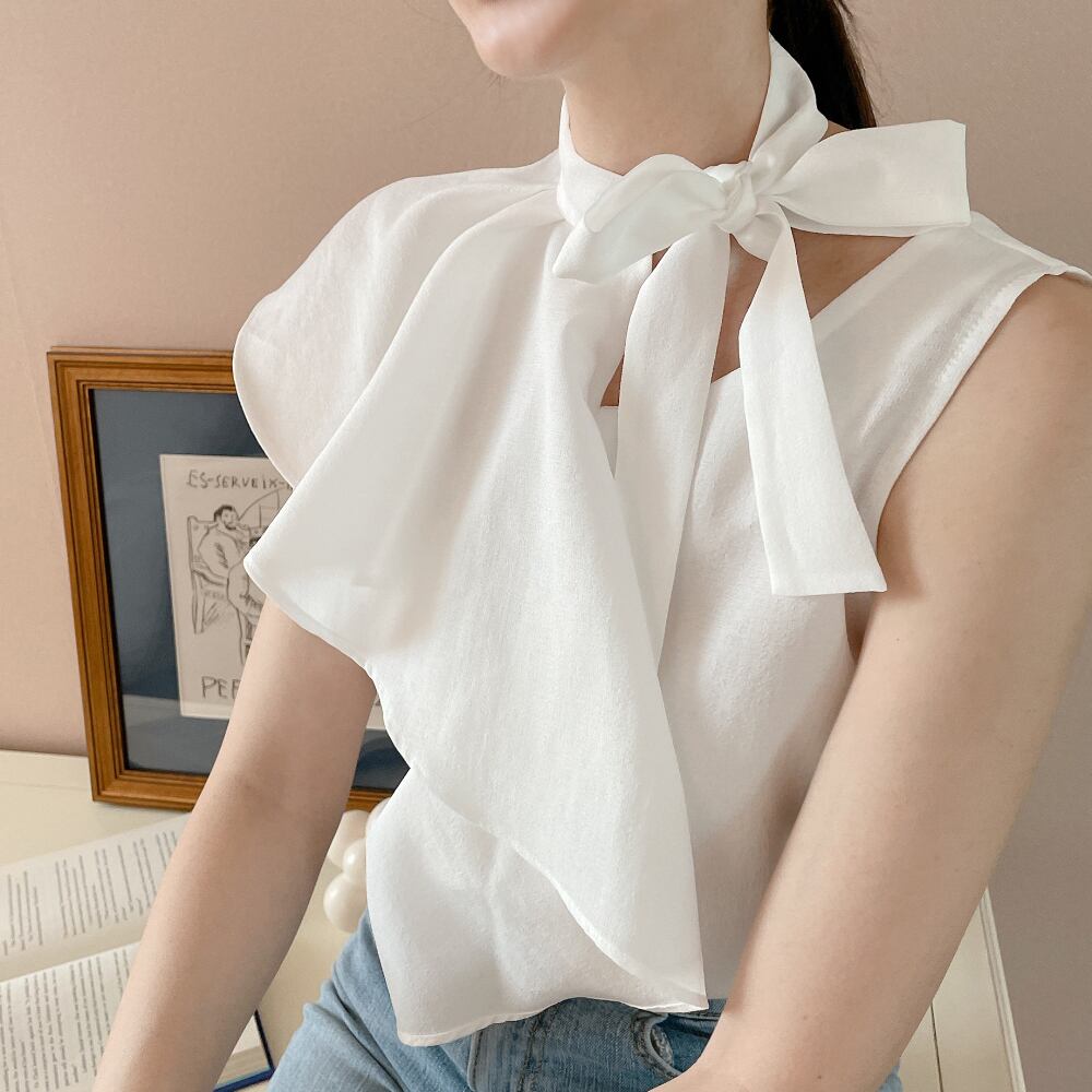 ラッフルボウタイブラウス. フリルブラウス アシメントリー ノースリーブ トップス フリル ブラウス トップス カットソー レディース ママコーデ お仕事コーデ オフィスコーデ 薄手 カジュアル 着回しコーデ 2カラー. a4442
