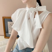 アシメントリーなデザインがオシャレなボウタイブラウス