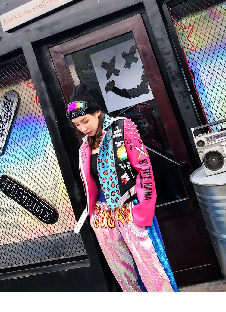 ヒョウ柄×スタッズのパンチの効いたデザインに、ポップなアートプリントがオシャレなレザージャケット