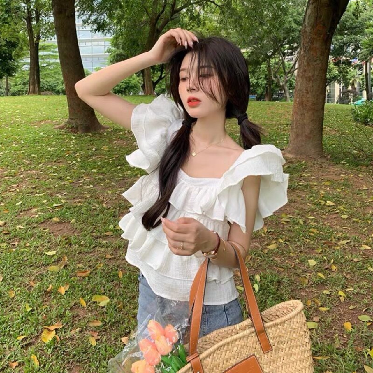 後ろ姿も気を抜かない!大きなフリルが可愛らしいブラウス