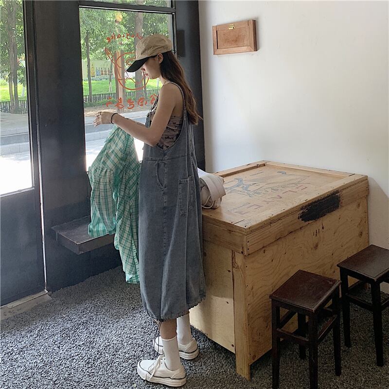 ゆったりとしたサイズ感が可愛いデニムサロペットスカート