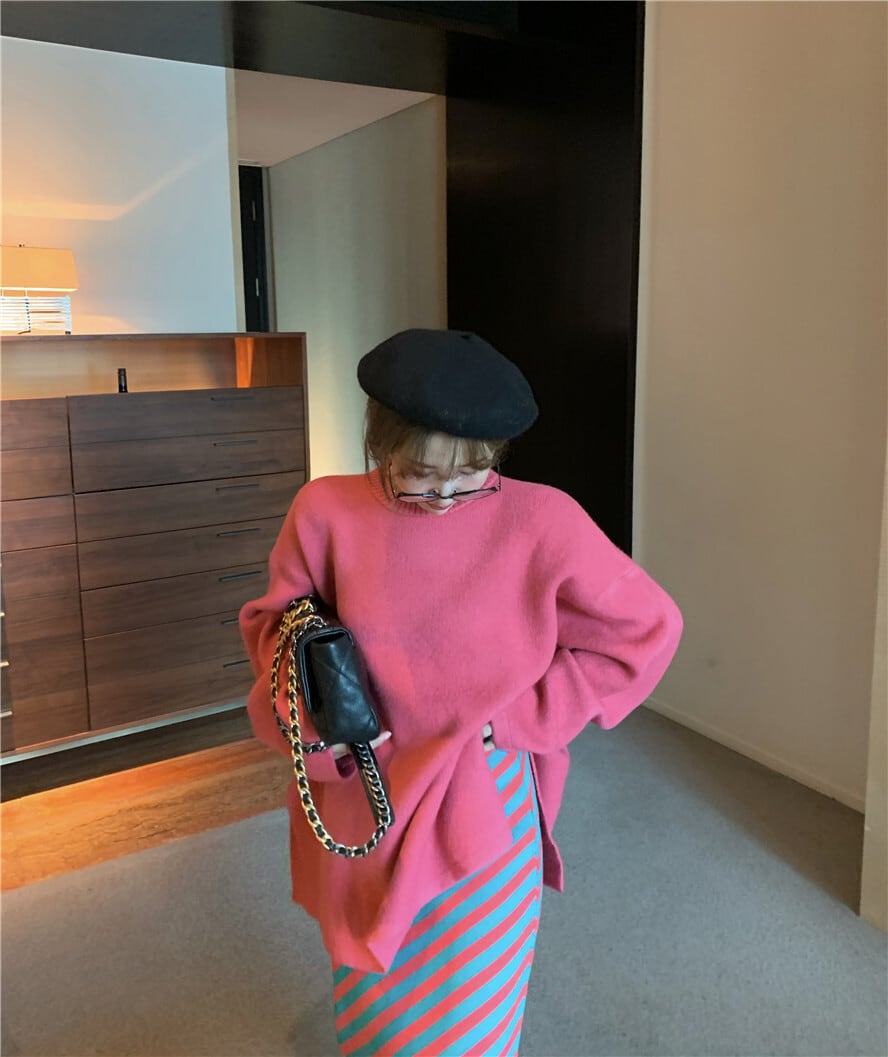 ピンクニット ニット セーター オーバーサイズ プルオーバー 秋冬 トップス レディース ルーズ 韓国 オルチャン ニット オフィスコーデ ママコーデ デートコーデ オシャレ CC88