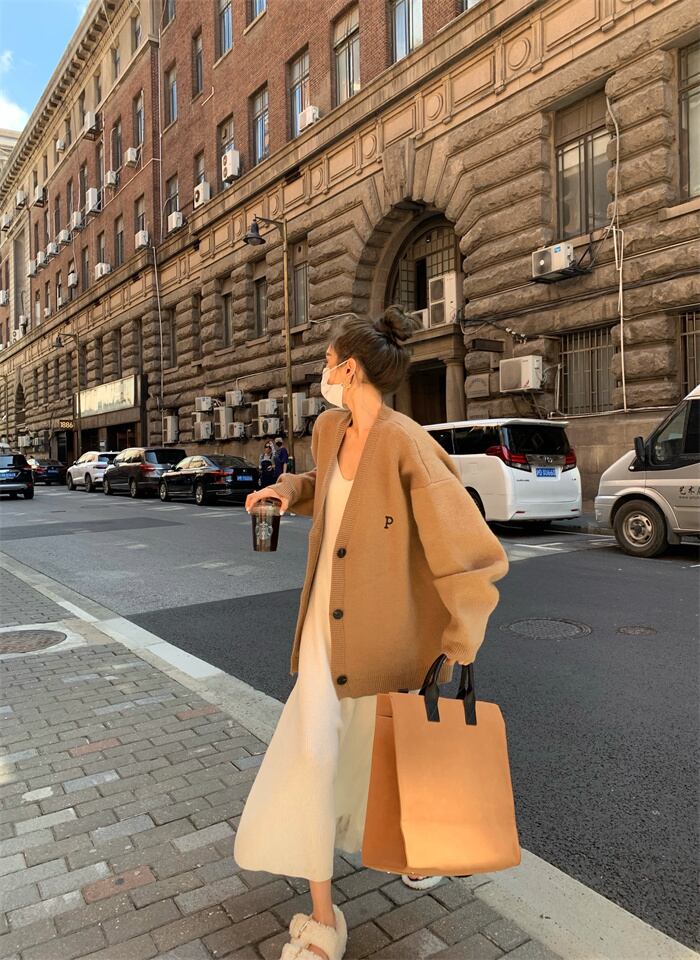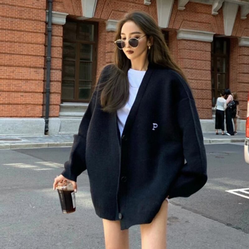 刺繍ロゴ入り ニットカーディガン ニット セーター カーディガン ジャケット アウター オルチャン オーバーサイズ 韓国 レディース 可愛い オフィスコーデ. ママコーデ D9