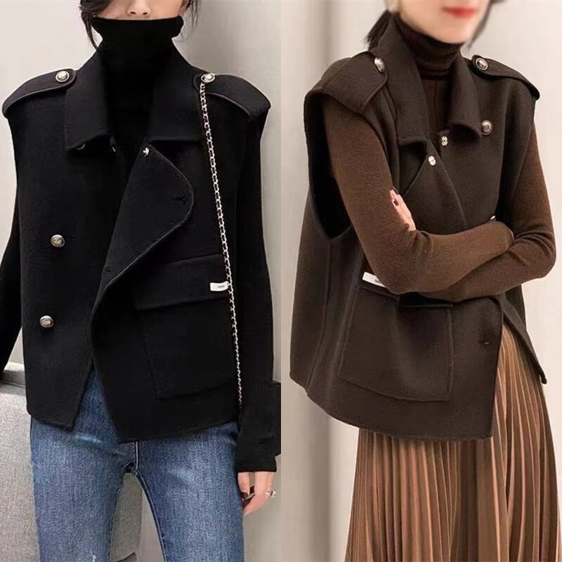 ウール ジレ ジャケット アウター ベスト ジレ ノースリーブ カジュアル レディース 可愛い カジュアル オフィスコーデ. ママコーデ 2カラー. a4522