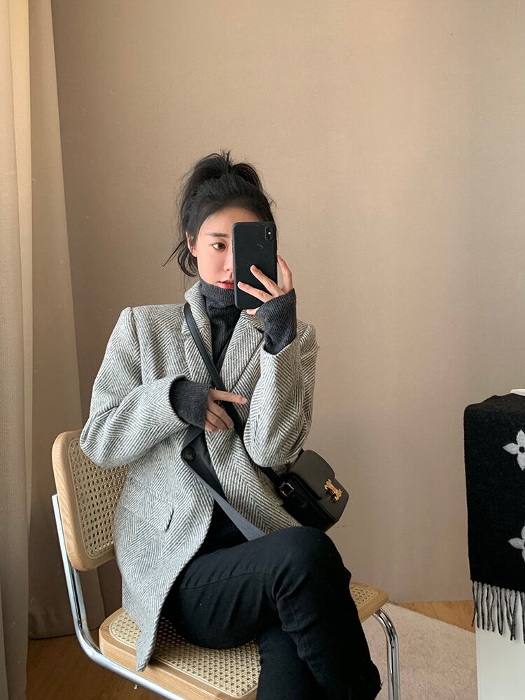 ヘリンボーンウールテーラードジャケット. 格子縞柄 テーラードジャケット ジャケット アウター レディース ゆったり 春 秋 冬 オフィスコーデ ママコーデ 体型カバー ニット カジュアル アメカジコーデ C227