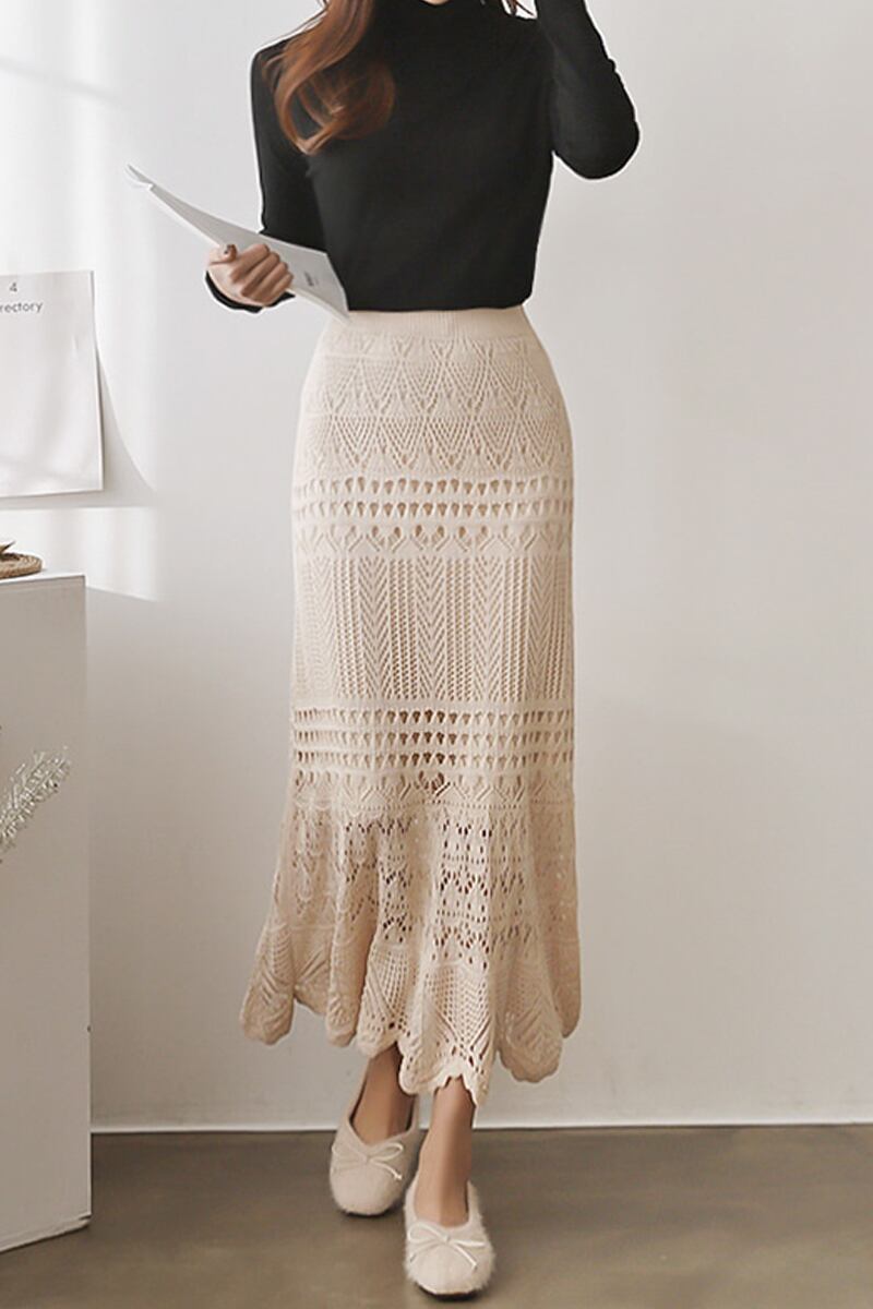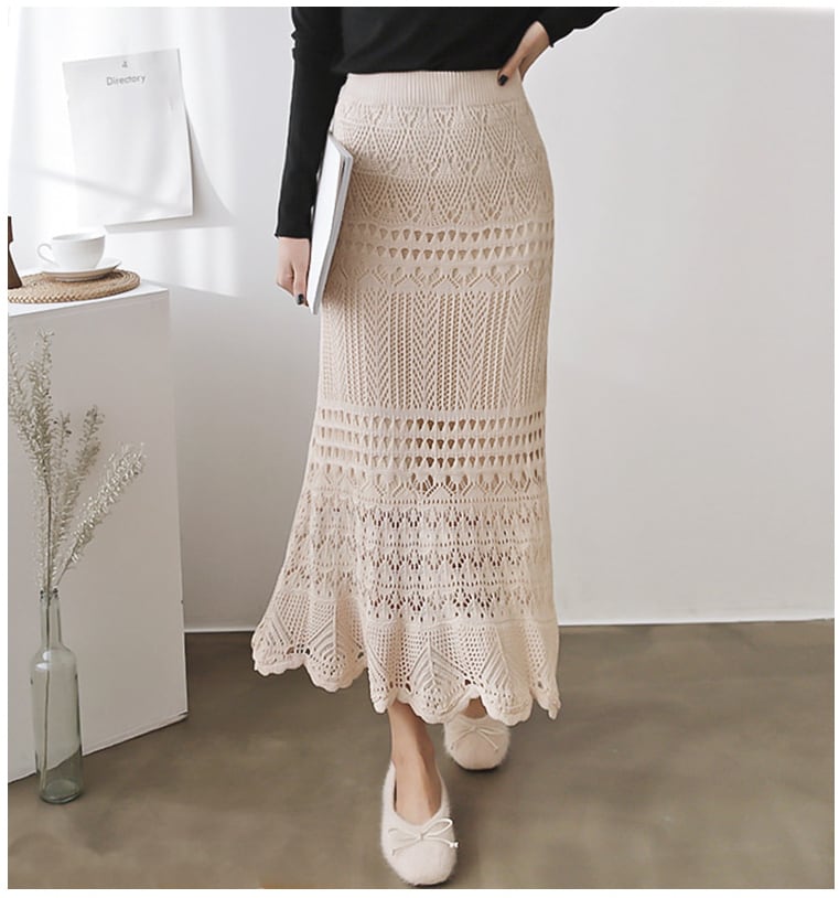 透かし編みの美シルエットニットスカート