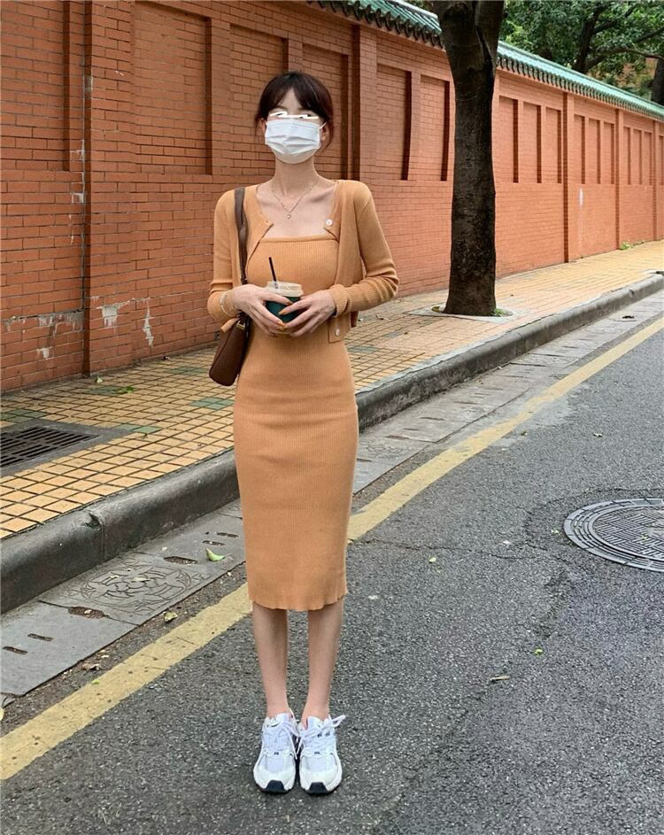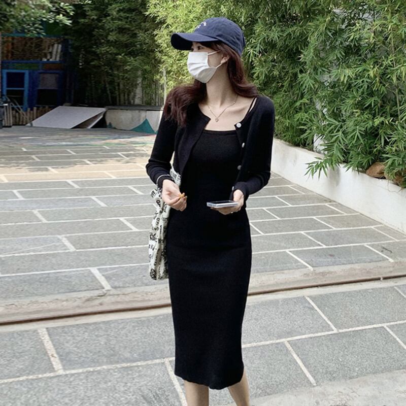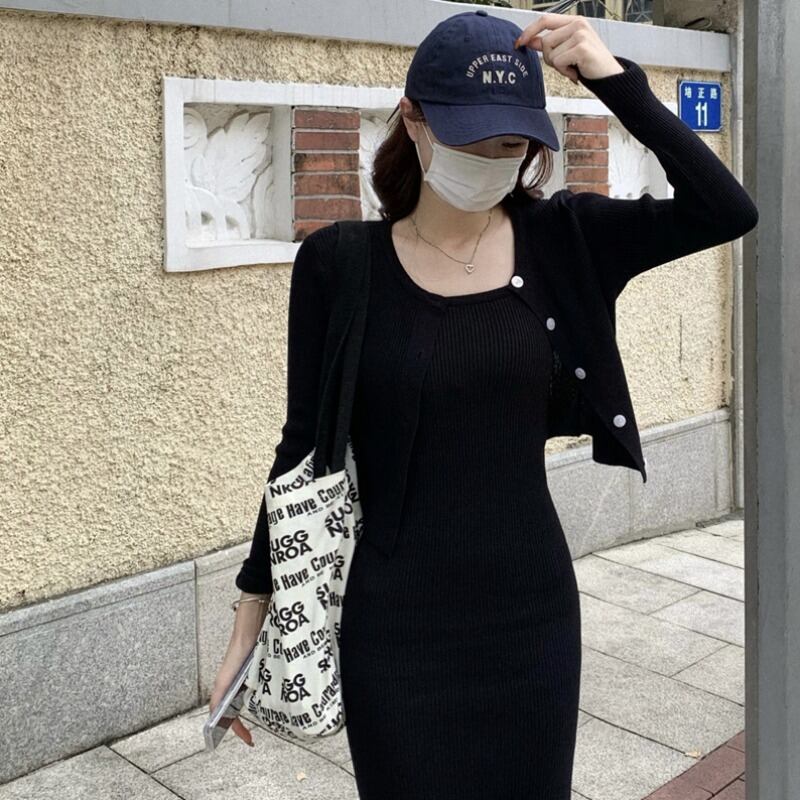 【セット】キャミソールニットワンピース+カーディガン 2点セット キャミソール ニットワンピース ニットカーディガン. レディース ワンピース ドレス 2カラー a4479
