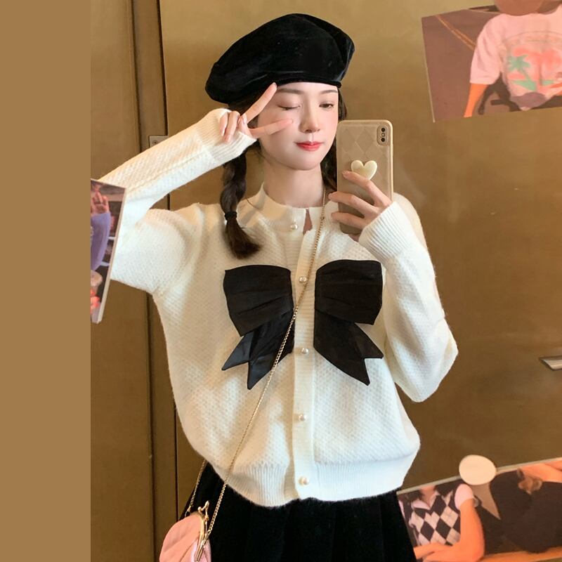 リボン付き ニットカーディガン カーディガン ニット セーター ジャケット アウター レディース パールボタン. オルチャン 可愛い オフィスコーデ デート お出掛け 4カラー a4489