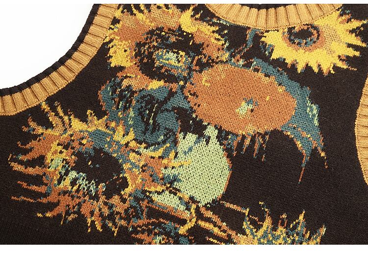 花柄ニットベスト レディース 春 秋 Vネック エスニック風 ヴィンテージ ひまわり セーターベスト ニット. セーター C229