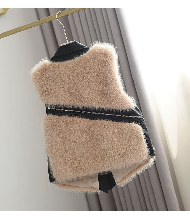 異素材MIXファージレ ジャケット アウター ベスト ジレ ファー もこもこ カジュアル ファスナー puレザー レディース 可愛い オフィスコーデ. ママコーデ 6カラー.C233