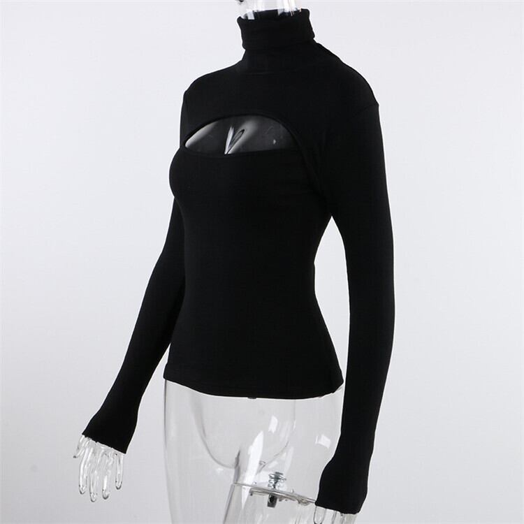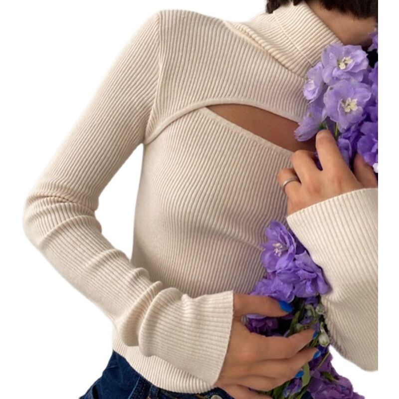 カットアウト リブニット リブトップス. リブフロントオープンデザイントップス ニット 長袖 リブT レディース トップス バストカットアウト セクシー 4カラー C153