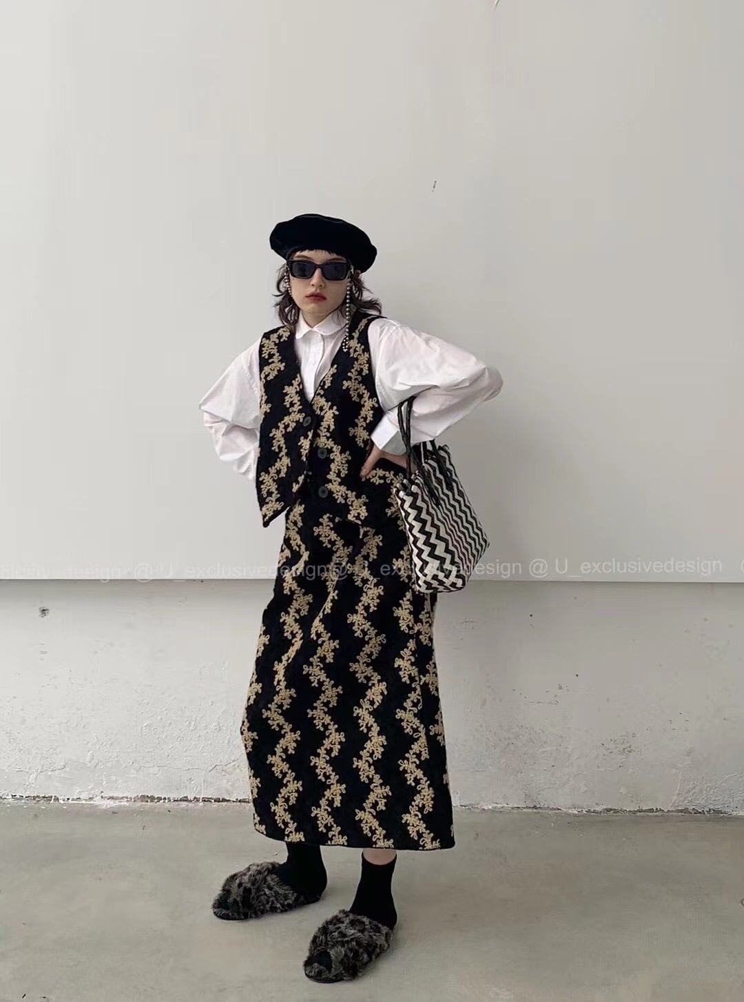 待望の再販♡♡♡【セットアップ】フェルトジャカード ジレ+スカート セットアップ ツーピース 上下セット SETUP. レディース モード系 オシャレ お出掛け デート オフィスコーデ 10代 20代 30代 C156