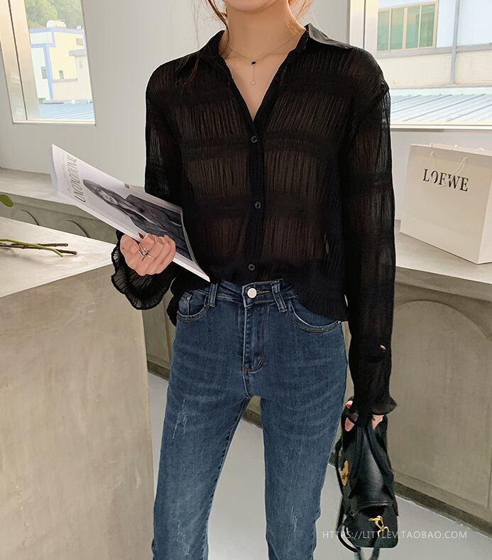 肌触りの良いサラッとした生地感で、着心地も抜群の透け感がでるブラウス