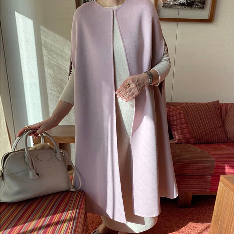 ロングノースリーブケープコート ポンチョ オープン コート ロングコート ジャケット アウター レディース 上品 ママコーデ オフィスコーデ 通勤 ラウンドネック ゆったり カジュアル 2カラー C190