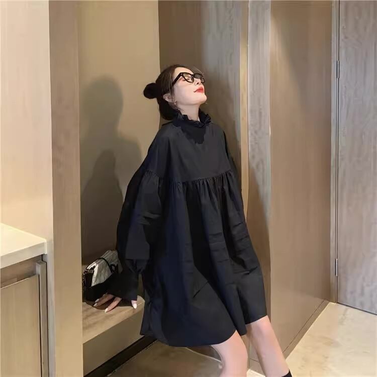 バックリボンブラウス シャツワンピース 2way シャツ ブラウス レディース トップス 長袖ブラウス リボンチュニック 可愛い オシャレ 韓国 オルチャン 白シャツ 2カラー D1