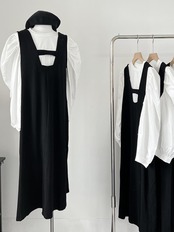 インナーのトップスはパフスリーブになってるので華奢見え効果が高く、ワンピースは大きめカラーのブラウスなどと合わせて着ても可愛いです^^