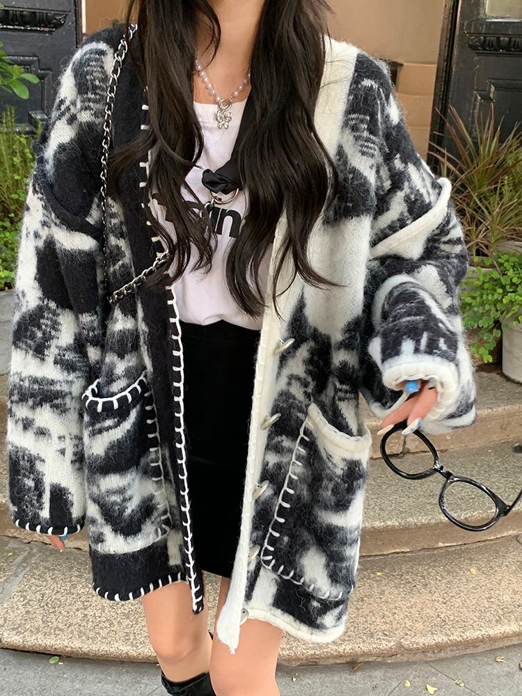 タイダイ柄に大きめステッチがオシャレなニットカーディガン