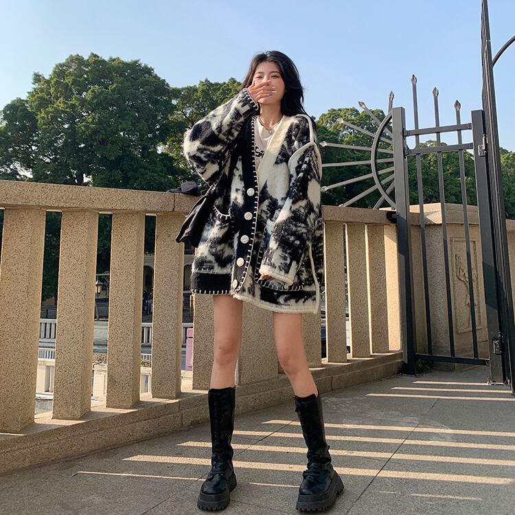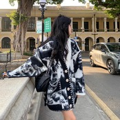 【大きいサイズあり】タイダイ柄 ニットカーディガン セーター ニット カーディガン ジャケット アウター レディース 絞り染め ルーズ 韓国 オルチャン 可愛い 10代 20代 30代 40代 C240