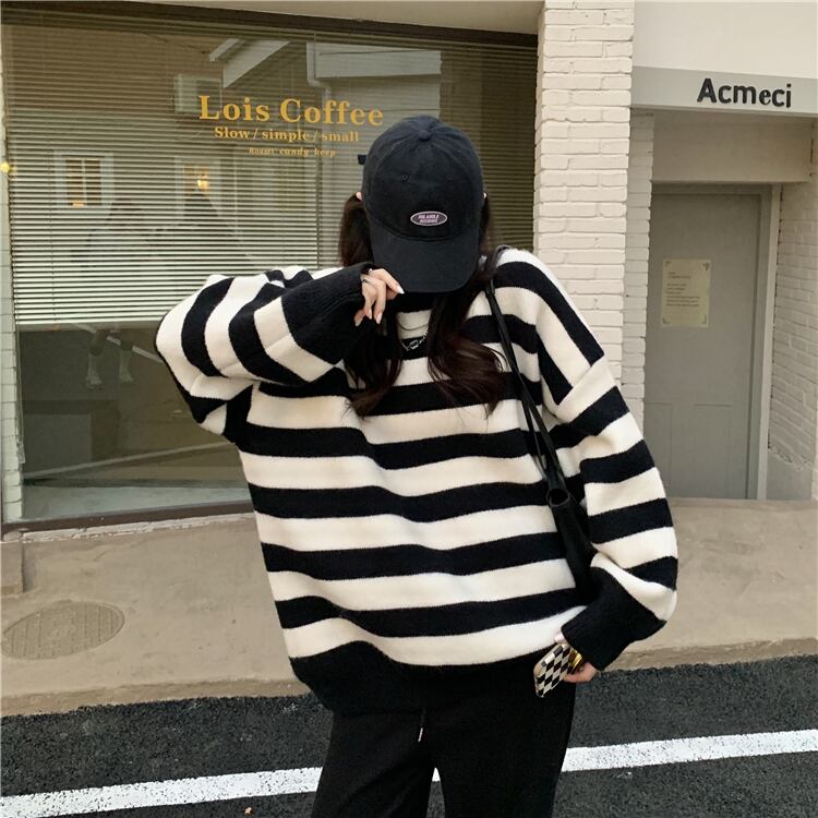 ボーダーニット ニット セーター ストライプ プルオーバー ルーズ レディースニット トップス レディース 秋冬 ハイネック 上品 大人シック ママコーデ オフィスコーデ お仕事コーデ 10代 20代 30代 40代 C242