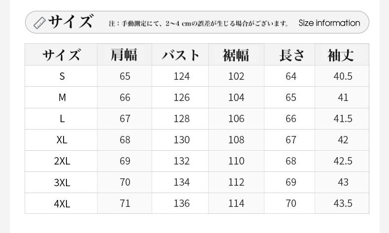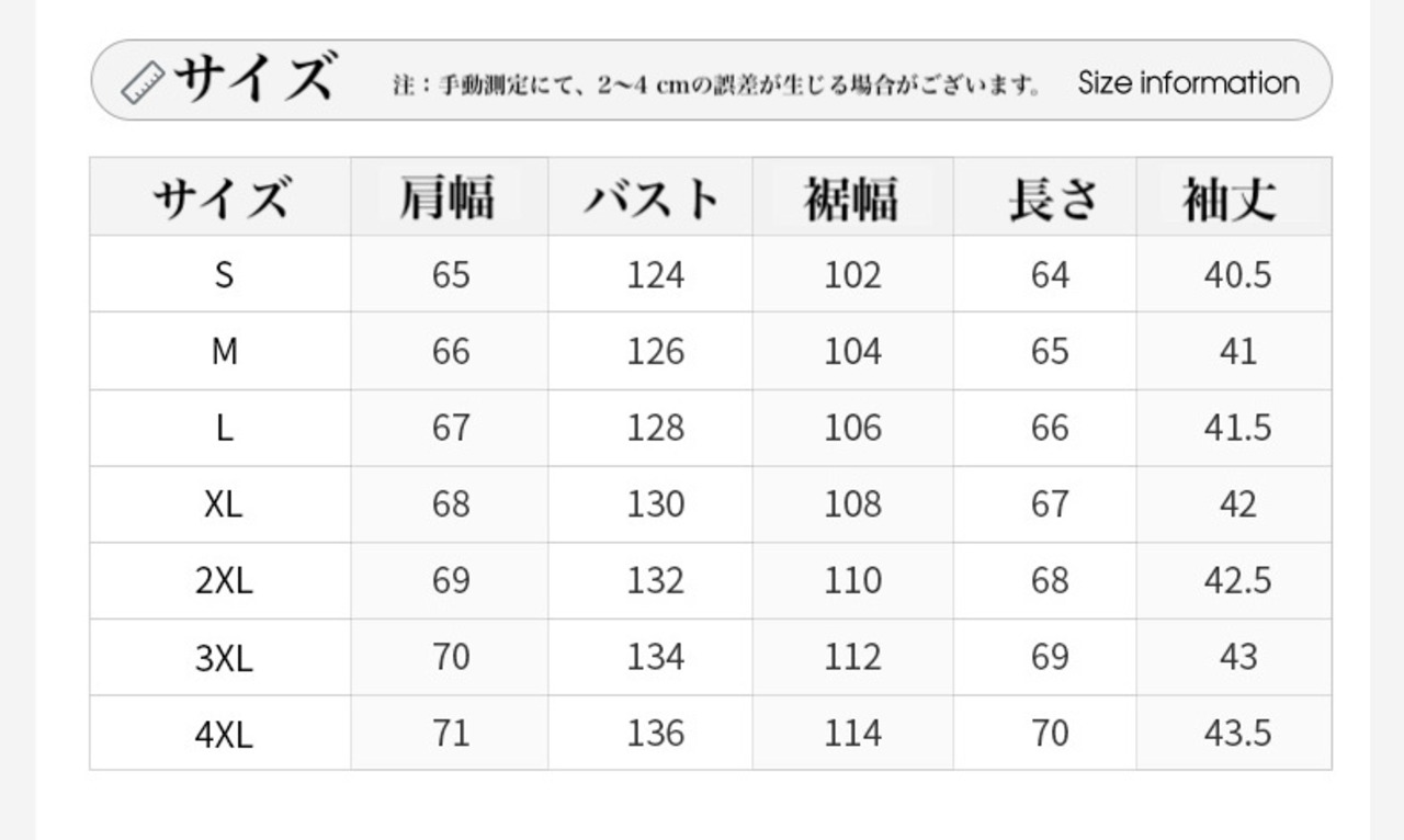 注:手動測定にて、2〜4 cmの誤差が生じる場合がございます。