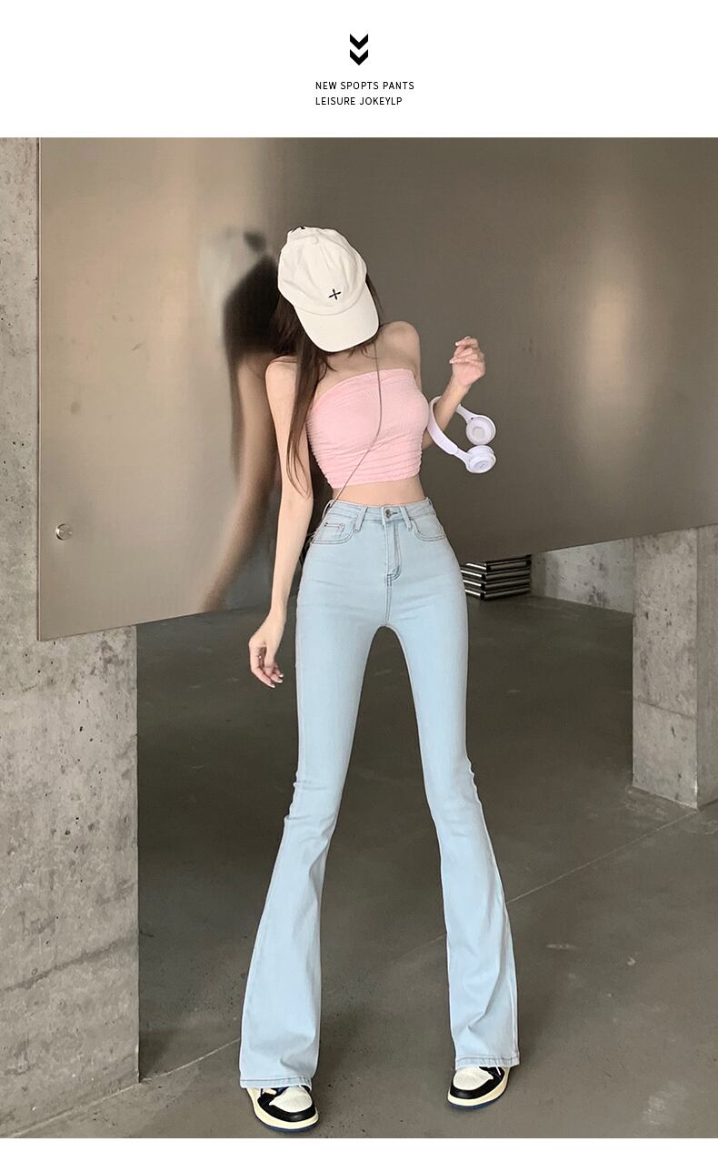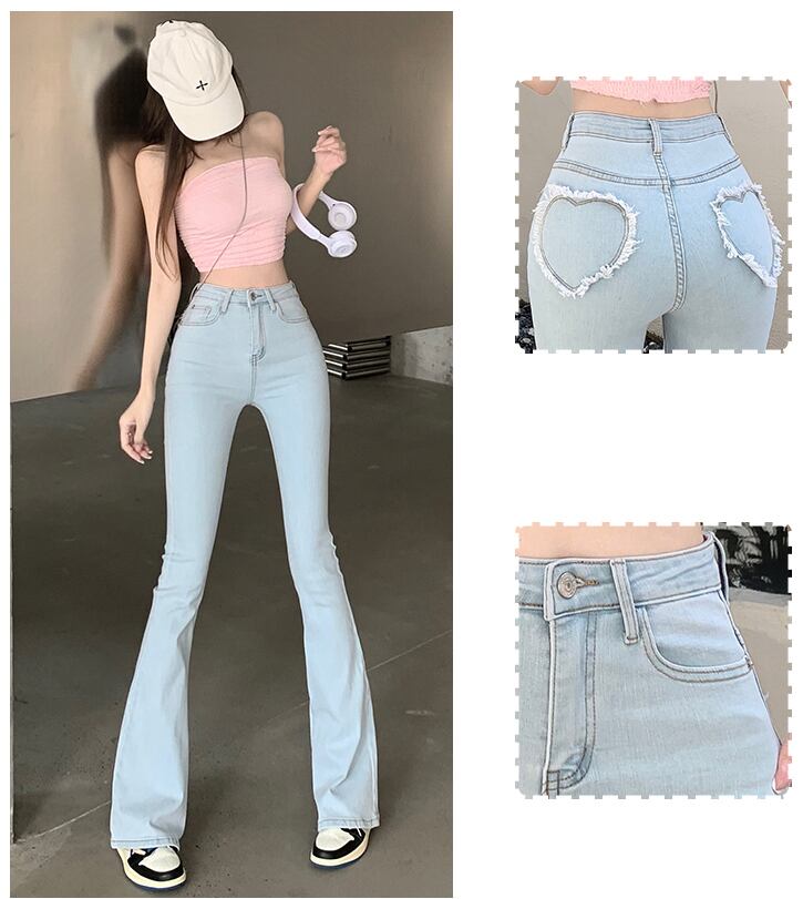 ハート柄ジーンズ ハイウエスト フレアジーンズ. デニム. ジーンズ ブーツカット レディース 美脚 脚長 オルチャン 2カラー D186