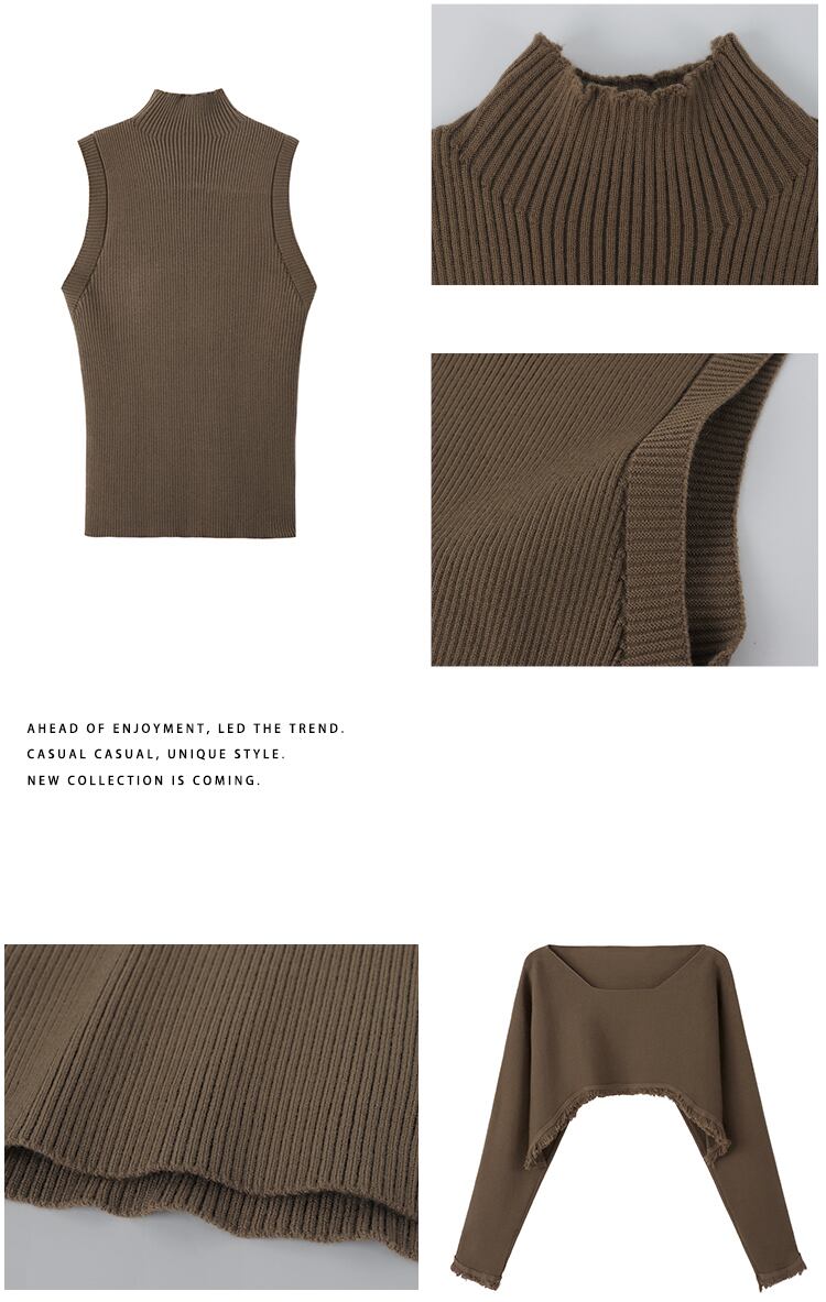 【2点セット】ノースリーブリブニット+フリンジセーター